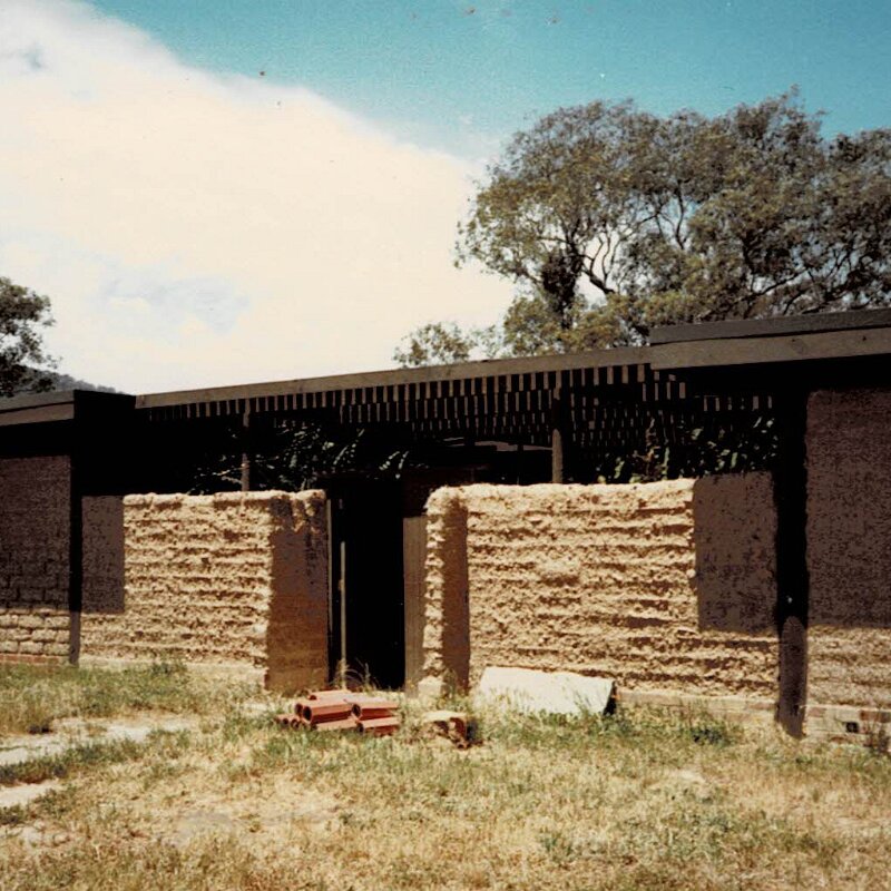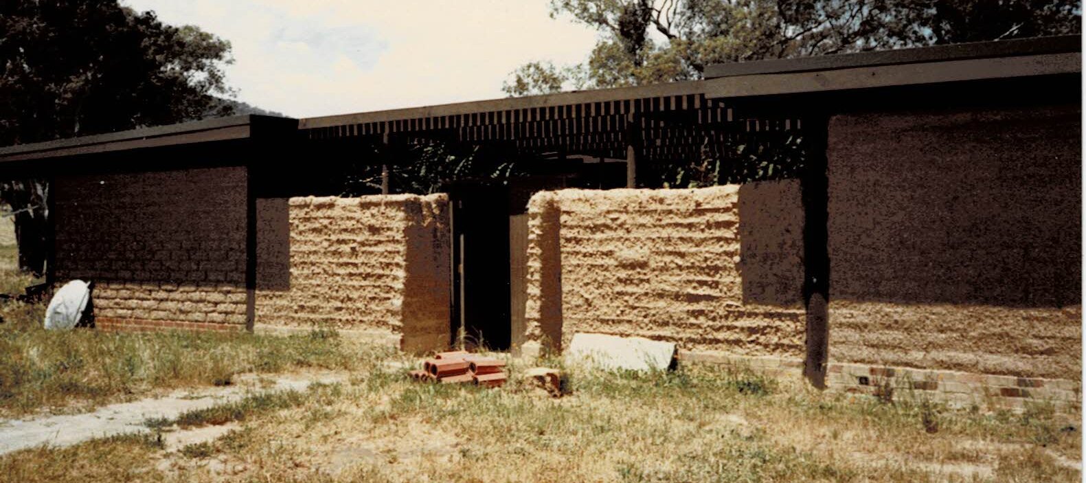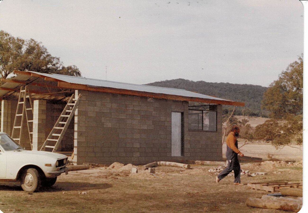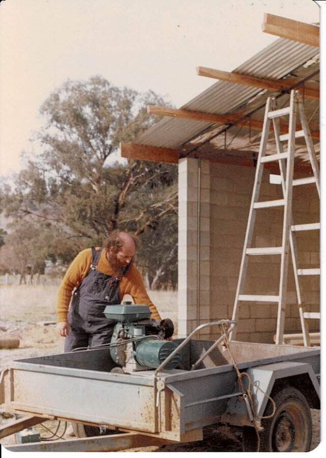 Front before RenderingOne Wall RenderedShed ConstructionBuilding the GarageTerry Doing Some CuttingBuilding Infill above DoorsRelaxing at Back GateTaking a BreatherMeg's 39th BirthdayHerbie The Bottle Raised GoatNeeshams' VisitShadows in the CourtyardSam In The ShadowsFire in the GullyXmas 1982 Neeshams with Herbie
