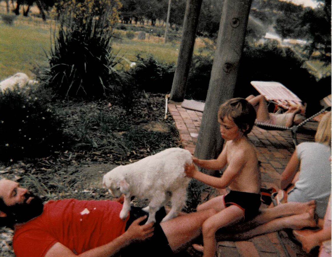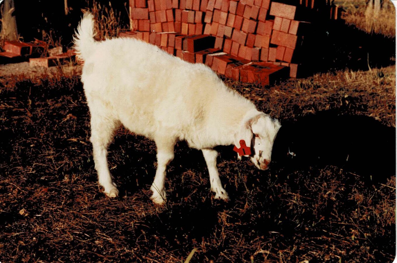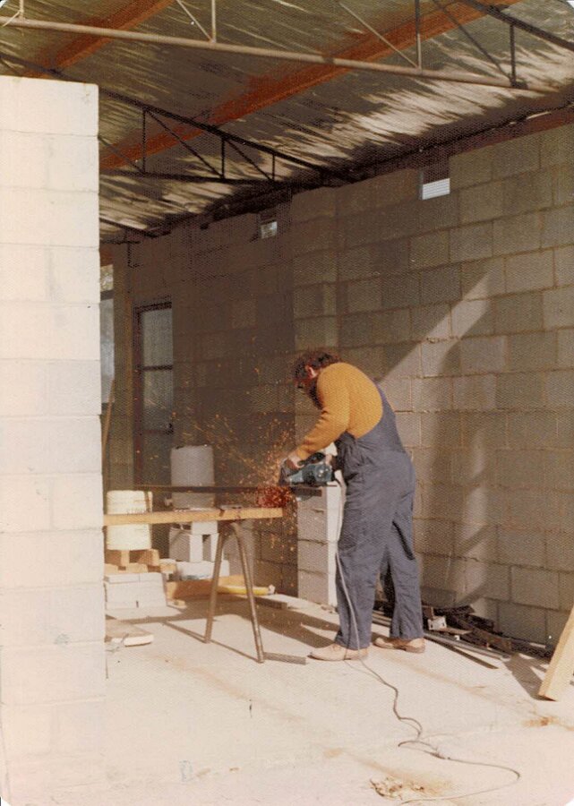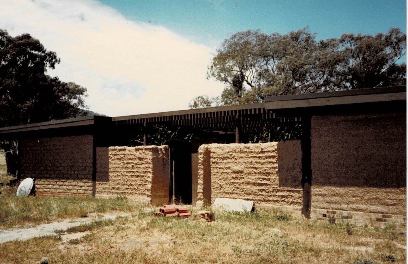Front before RenderingOne Wall RenderedShed ConstructionBuilding the GarageTerry Doing Some CuttingBuilding Infill above DoorsRelaxing at Back GateTaking a BreatherMeg's 39th BirthdayHerbie The Bottle Raised GoatNeeshams' VisitShadows in the CourtyardSam In The ShadowsFire in the GullyXmas 1982 Neeshams with Herbie